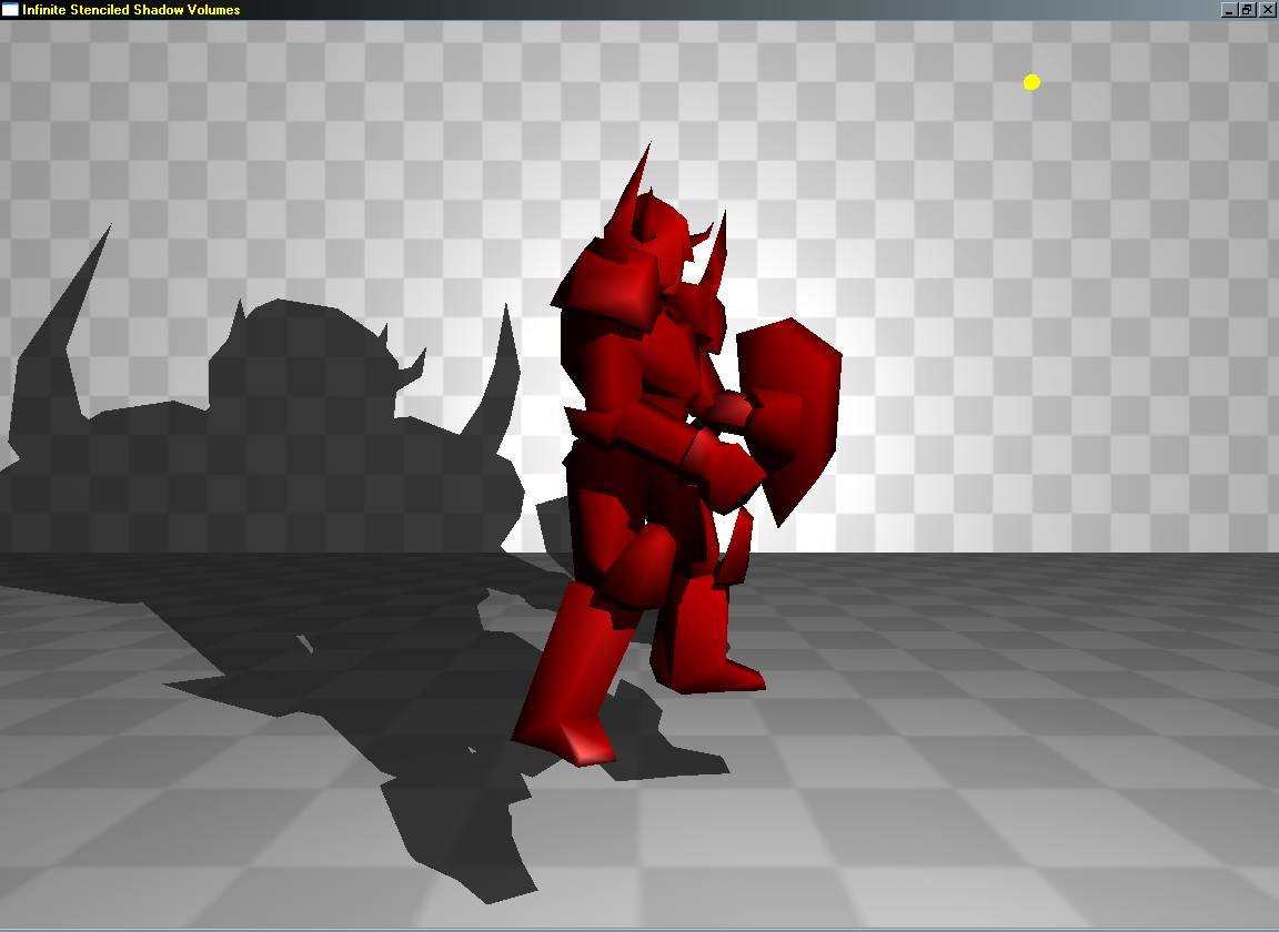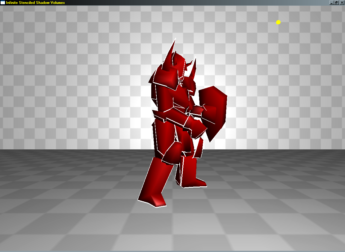 Dynamická světla jsou pěkná, ale ke světlu neodlučitelně patří i stíny. Stín má "objem" (shadow volume), který představuje prostor mezi předmětem, který stín vrhá (shadow occluder) a nejbližším povrchem, který stín přijímá (shadow receiver). Na vytvoření shadow volume je potřebné poznat hlavně polohu světla a tvar předmětu, který stín vrhá. Tvar předmětu z hlediska tvorby stínu představuje jeho silueta. Na tomto screenshotu je silueta zvýrazněná: